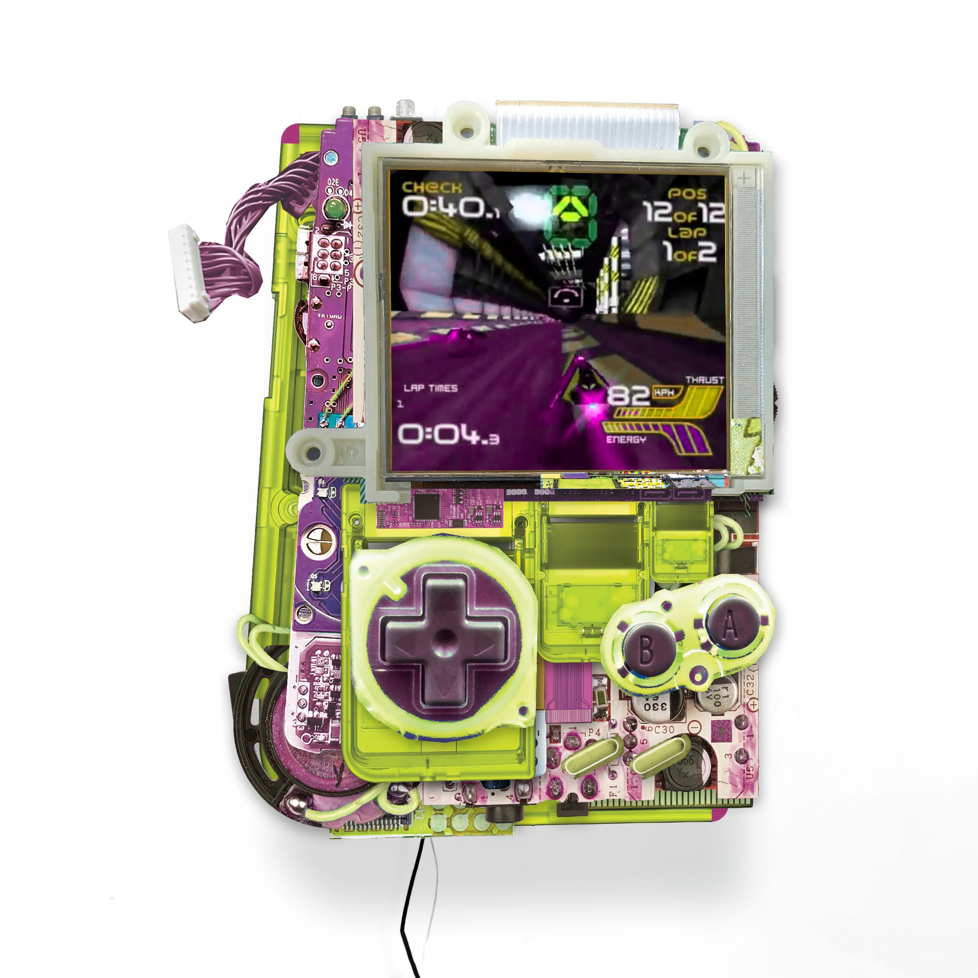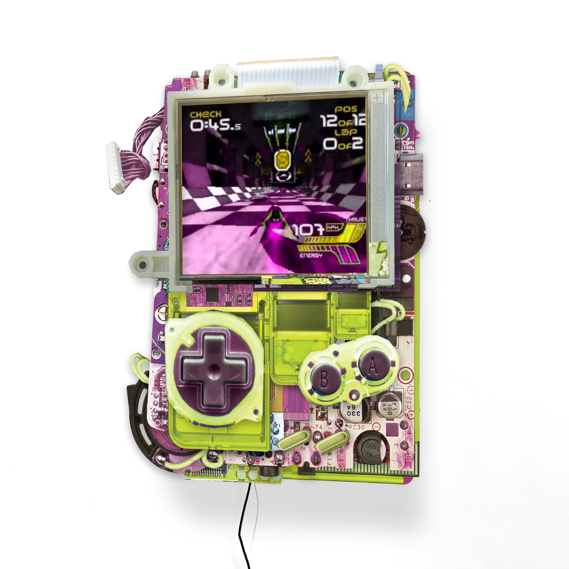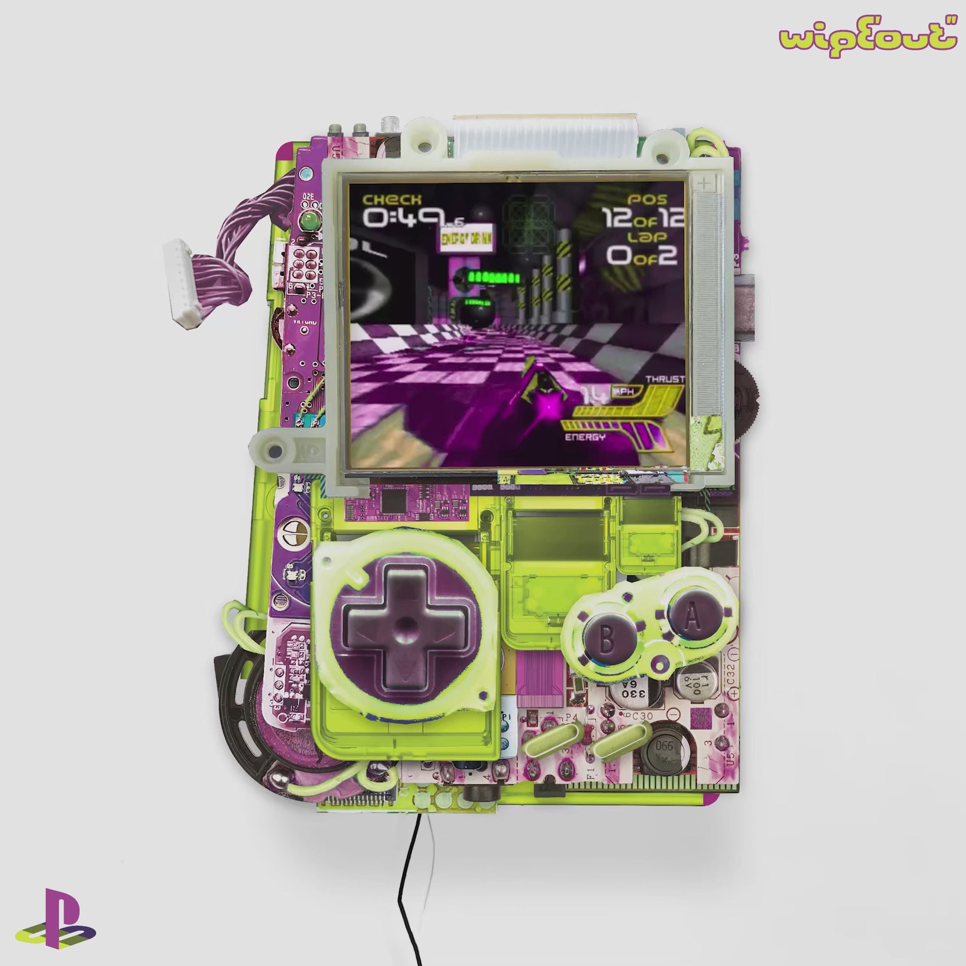 Aluminum composite panelling, 19” IPS screen, Raspberry Pi, PS1 emulator, Wipeout XL ROM, PS1 controller, 3D printed controller wall mount